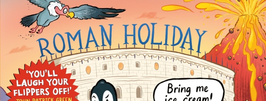 Pablo and Splash are time-travelling Antarctic penguins who are polar opposites and best friends. But their annoying frenemy Benji (also a penguin) never believes their wild time travel stories. Benji demands PROOF in the form of a gladiator’s helmet from Ancient Rome, so to Rome they must go in their TimeBender. Things don’t go exactly to plan when they arrive, however, because Pablo and Splash are captured and brought to the emperor’s palace and imprisoned along with a gaggle of hysterical, captive birds. The motley crew headed up by Pablo and Splash are forced to go up against two of Rome’s fiercest gladiators in the Colosseum, Brutus and Magnus.